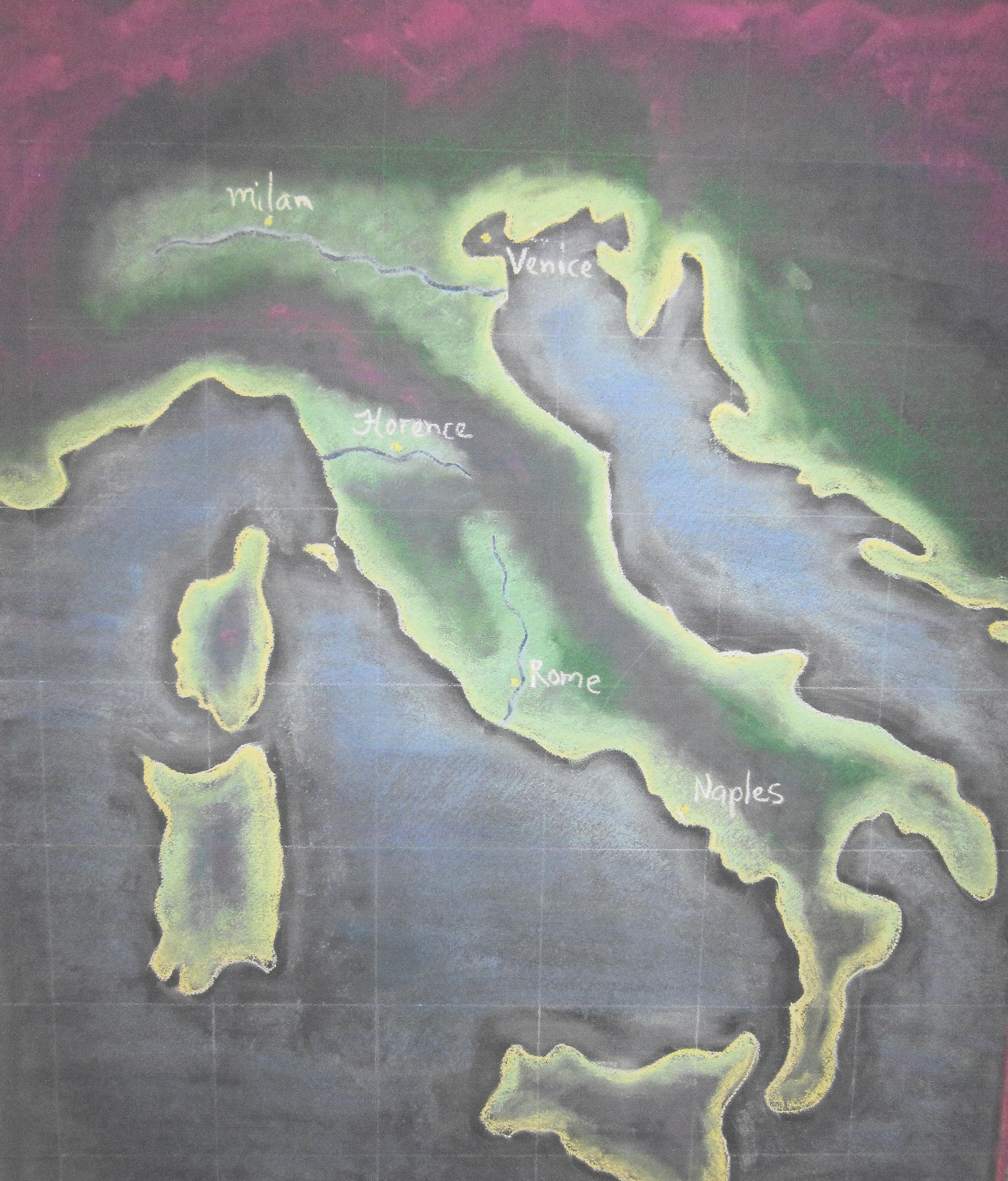 6th Grade Map of Italy Chalkboard Drawing